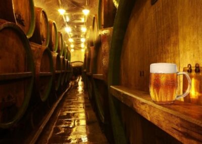 gjæring og øllagring i gamledager. Her får vi smakt på ufiltrert og upasteurisert Pilsner Urquell, noe som til vanlig ikke forlater bryggeriets vegger. Lunsjen spises så på bryggerirestauranten som tilbereder klassisk husmannskort, passende meget godt til øl.